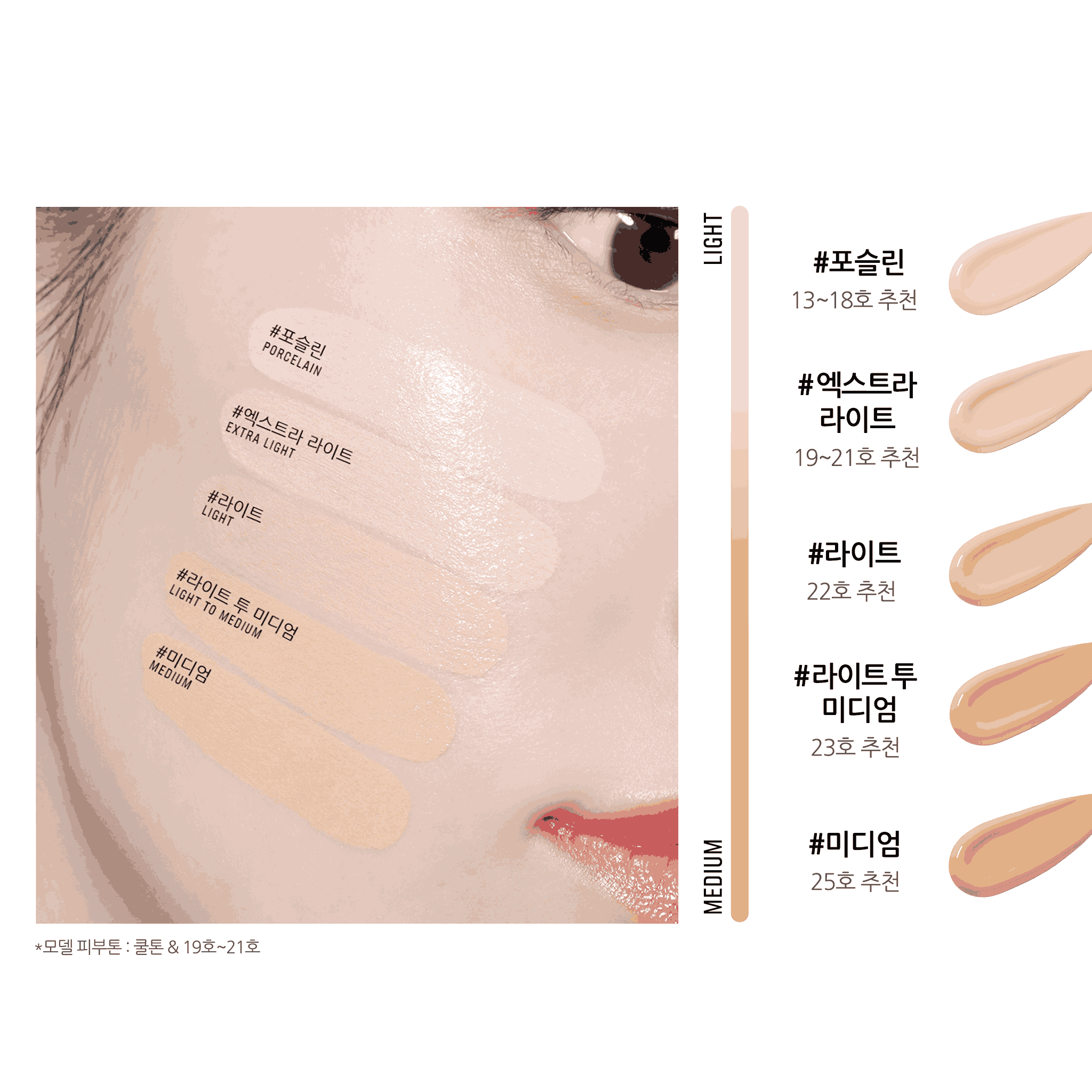 동봉된 퍼프를 쿠션에 가볍게 눌러 내용물을 묻힌 뒤, 얼굴 중앙에서 바깥쪽으로 두드리듯 펴 발라주세요. 원하는 만큼 덧발라 커버력을 조절할 수 있으며, 매끄럽고 윤광이 도는 초밀착 글로우 피니쉬를 완성할 수 있습니다. 필요 시 리필로 교체해 언제나 산뜻한 피부를 유지해 보세요.